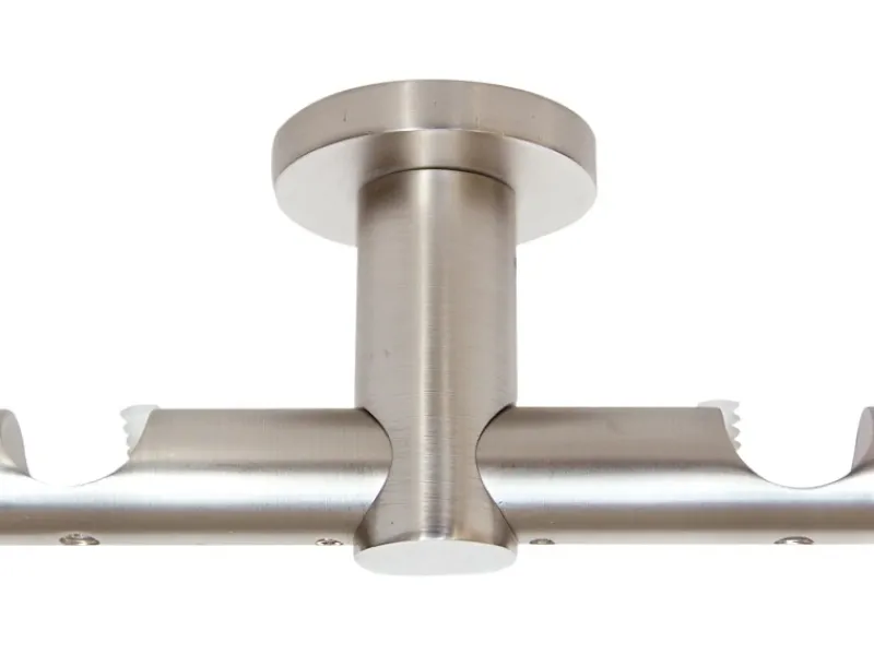 Der Wandhalter besticht durch ein formschönes Design dank versteckter Verschraubung. Mit dieser Halterung können Sie mühelos und sicher Ihre Gardinenstangen an der Wand aufhängen und den Raum individuell nach Ihrem Geschmack gestalten. Zur Anbringung der Vorhangstangen benötigen Sie zwei Träger. Der Deckenabstand beträgt 5 cm. Der in Edelstahl gehaltene Doppelträger lässt sich optimal mit gleichfarbigen Garnituren kombinieren.