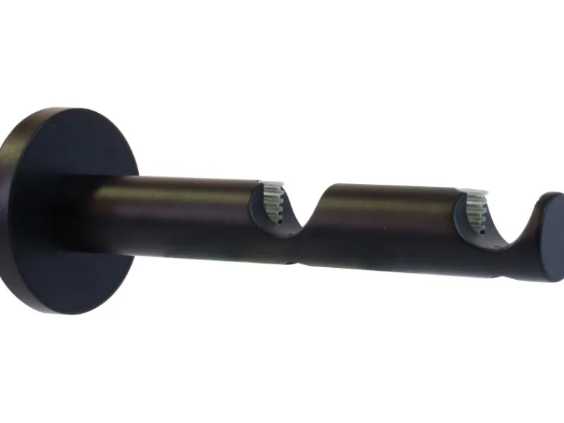 Die mydeco Gardinenstangen-Halterung Function unstreicht mit ihrem modernen Aussehen in Madentechnik jede Gardine. Der Doppelträger in stilvoller Schwarz-Optik ist aus hochwertigem Metall angefertigt und zeichnet sich durch sein zweiläufiges System aus. Sowohl Rohre als auch Profile können befestigt werden. Die Halterung ist für alle Gardinenstangen mit einem Durchmesser von 2 cm geeignet. Sie misst eine Gesamtlänge von 13,1 cm und einen runden Kopf von 4,9 cm.
