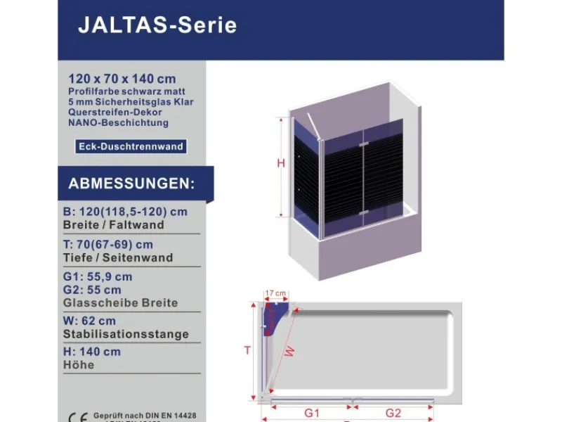 Die Badewannenfaltwand kann nach innen und außen gedreht werden und spart Platz