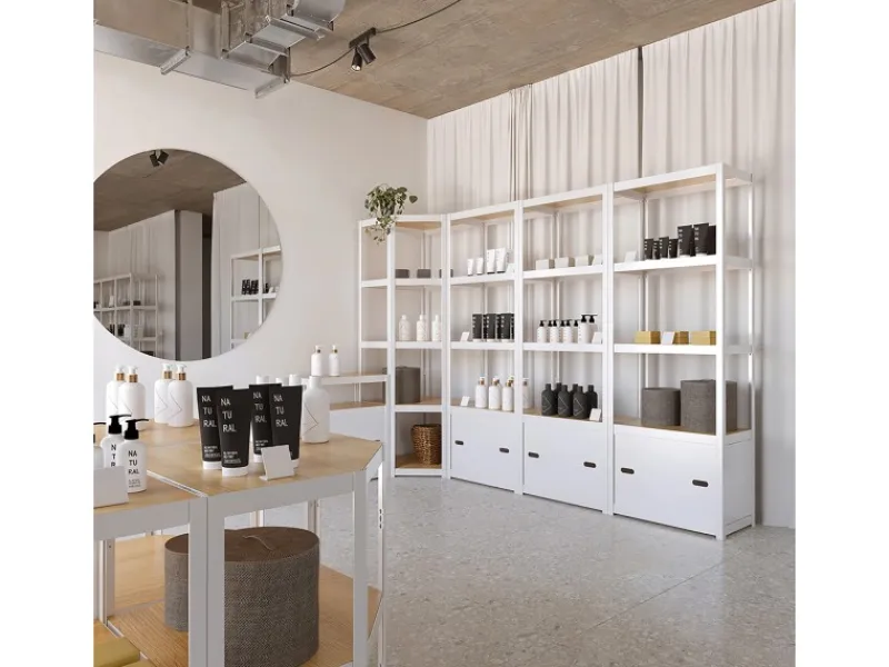 Das Regal ist kompatibel mit anderen Regalen und Lösungen aus der AR Shelving Rivet Style Series, wie dem Rivet Style Regal S oder dem Rivet Style Regal M. Darüber hinaus lässt sich das Regalsystem mit passenden Seiten- und Rückwänden oder Lochwänden flexibel erweitern und vervollständigen.