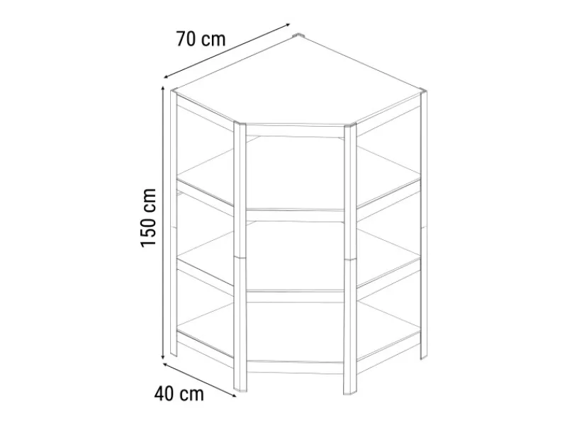 Das Regal kann dank des Eck-Regal-Erweiterungsmoduls M (48 cm × 70 cm × 70 cm × 40 cm) in der Höhe erweitert und in ein Regal mit 198 cm Höhe und 5 Ebenen umgewandelt werden.