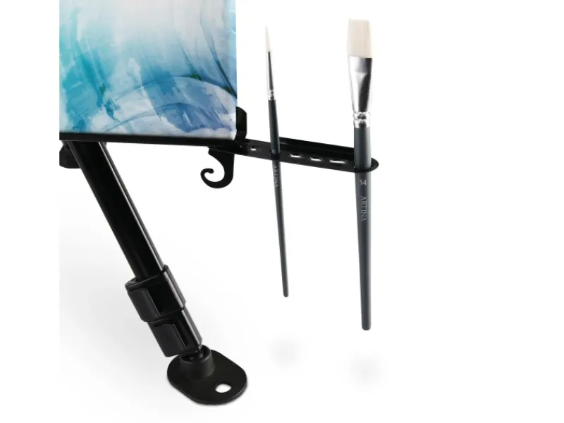 Artina Aluminium Staffelei Paris 165 cm – Für Leinwände ca. 82 cm cm HöheDie Staffelei Paris kann sowohl als Feldstaffelei als auch als Tischstaffelei benutzt werden. Zudem ist die Staffelei tragbar und stabil. Dabei kann die Leinwandstaffelei von 51 bis zu 165 cm Höhe stufenlos an Ihrer Situation angepasst werden.Die gummierten Füße, die wahlweise mit Heringen am Boden befestigt werden können, und die einzeln einstellbaren Teleskopbeine garantieren überall einen festen und ebenen Stand. Die 1000 Gramm Gewicht sind ideal, damit diese Staffelei als Wegbegleiter unverzichtbar für Sie als Künstler wird.Integrierter PinselhalterDamit Sie keine Probleme mit Ihren Malutensilien haben sind in der stabilisierenden Querstrebe 3 Haken und ein 6-facher Pinselhalter integriert. Somit können sie Ihre wichtigsten Helfer ablegen und Ihren Ideen freien Lauf lassen.Stufenlos einstellbarDa der obere Teil der Staffelei stufenlos einstellbar und auch abnehmbar ist, können jegliche Keilrahmen und Leinwände mit einer Höhe von bis zu 82 cm aufgestellt werden.