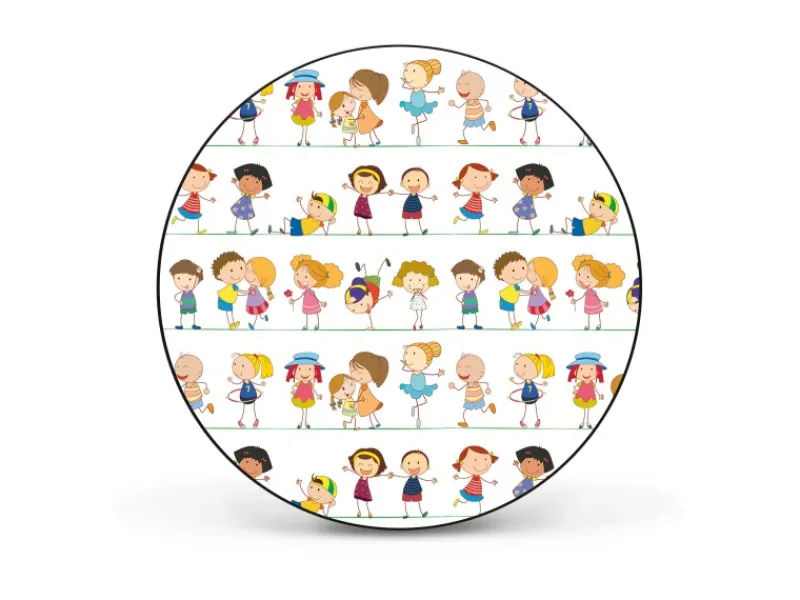 Das Motiv Kinder wird mit einem Schutzlaminat überzogen und ist lösungsmittelfrei.