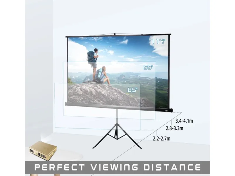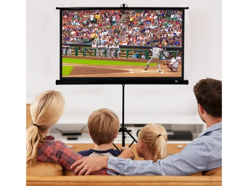 Das stabile Dreibein mit breiter Standfläche sorgt für einen sicheren Stand der Leinwand.