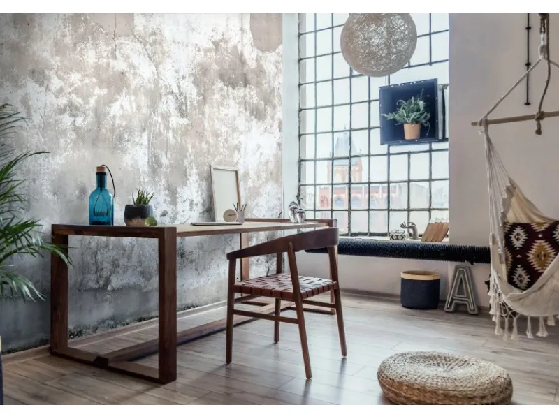 Die einzigartige Atmosphäre von Ursprünglichkeit und vergangener Zeitgeschichte zeremoniert diese digitale Fotowand von erismann in verblassten Farbputz. Feine emporsteigende Risse und abgeblätterte Farbspiele in schönem Türkisgrau, die an Industrie-Beton erinnern, bilden die perfekte Leinwandbühne für ein stylisch-puristisches Wohnszenario. Besonders in Verbindung mit Rohmaterialien aus Glas, Holz und Edelmetalle.