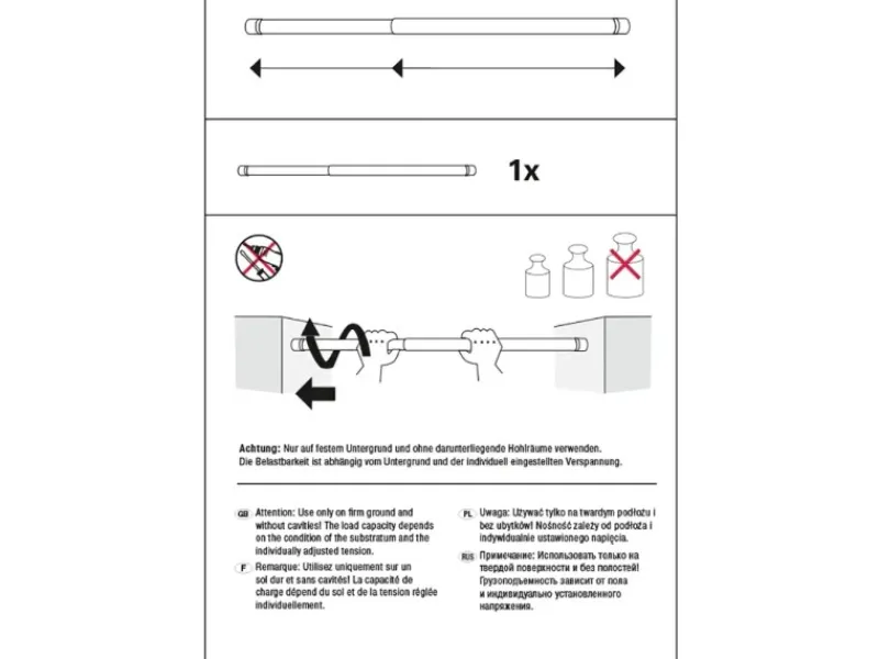 Die Spannstange ist in verschiedenen Farben und Längen erhältlich.