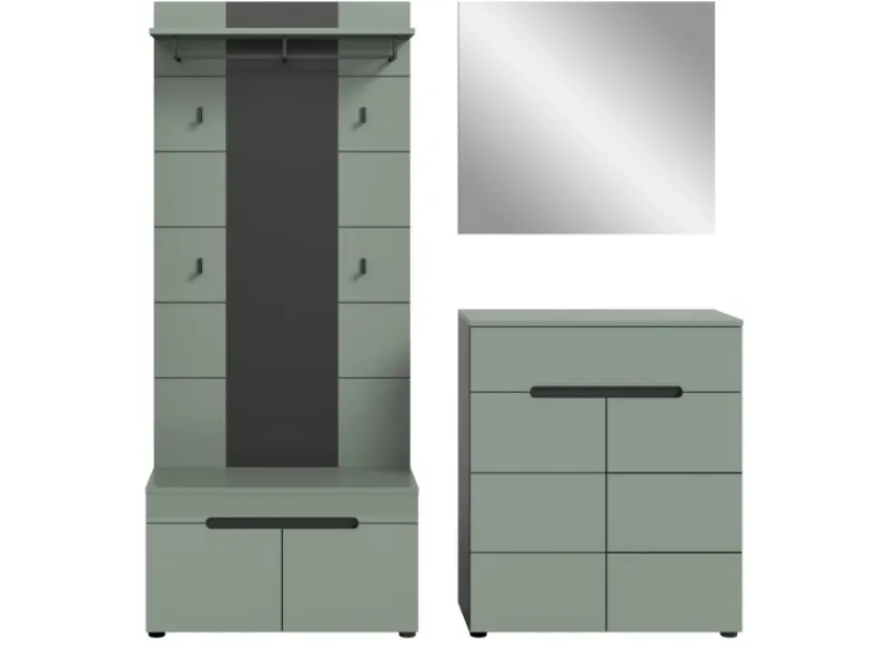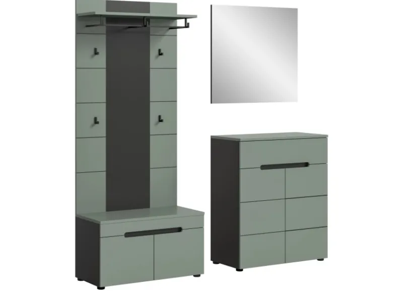 Garderobe „Cooper“ von Inn.Furn, 4-teilig, Salbei Grün / Basalt Grau