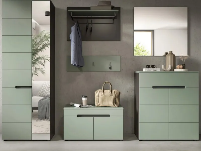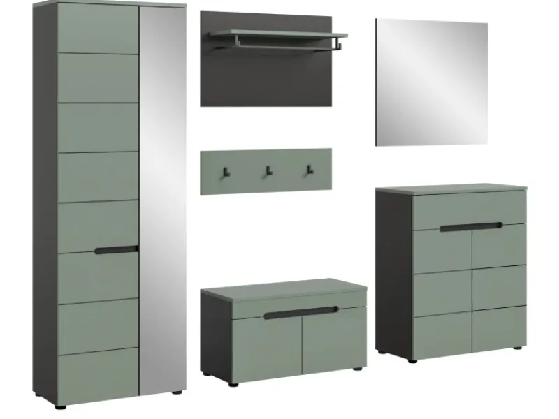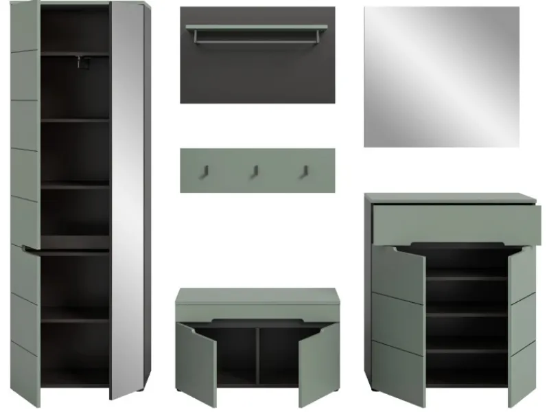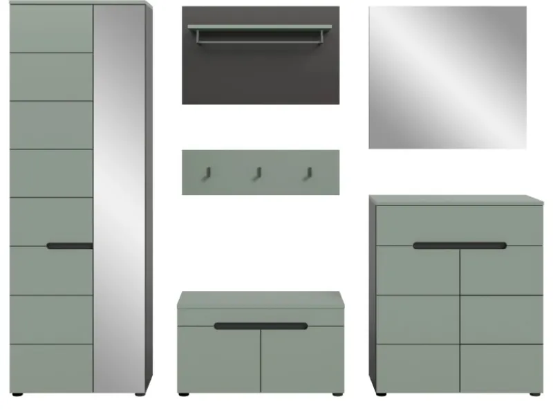 Garderobe „Cooper“ von Inn.Furn, 6-teilig, modernes Salbei Grün / Basalt Grau Design