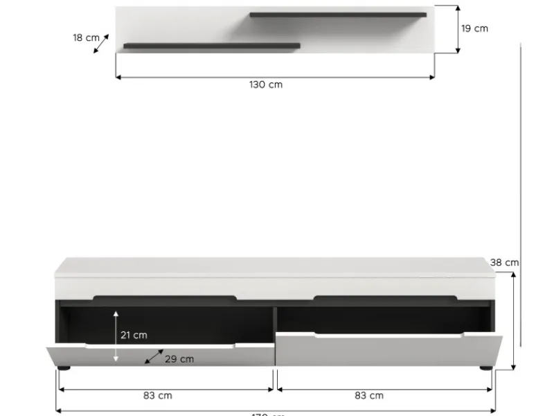 – Wandboard B/H/T ca.: 130/19/18 cm