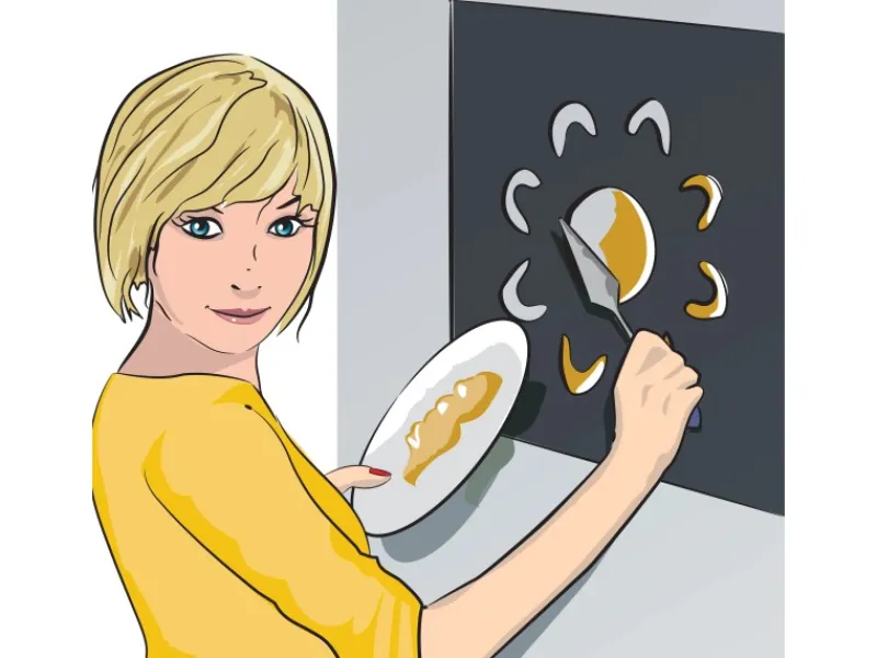 Bringen Sie die Schablone in die gewünschte Position und drücken Sie sie fest an. Je nach Untergrund kann ein mehrfaches Besprühen für eine gute Haftung erforderlich sein. Zusätzlich empfehlen wir für einen besseren Halt die Fixierung der Schablone mit einem handelsüblichen Malerkrepp. Bei der Farbaufnahme mit dem Schablonierpinsel oder der Farbrolle sollten Sie darauf achten, dass Sie überschüssige Farbe zuerst auf einem neutralen Untergrund abtupfen bzw. abrollen. So verhindern Sie, dass zu viel aufgenommene Farbe unter die Schablone gerät. Die Schablone nach dem Gebrauch mit kaltem Wasser reinigen.