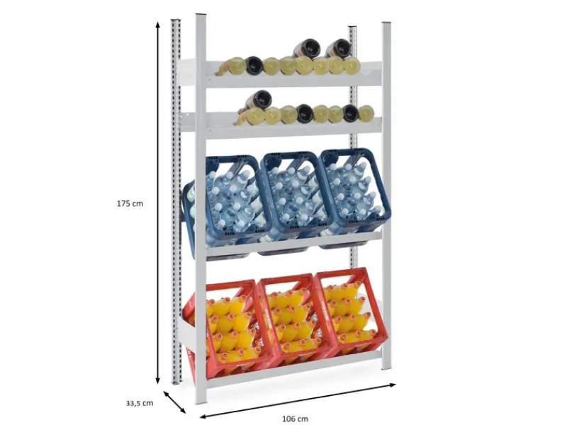 Das Getränkekistenregal bietet Platz für 6 Kisten auf 2 Ebenen und 38 Weinflaschen