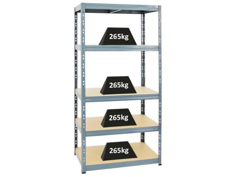 Hohe Traglast von 265 kg pro Fachboden bzw. Gesamttraglast von 1325 kg für die 5 Ebenen