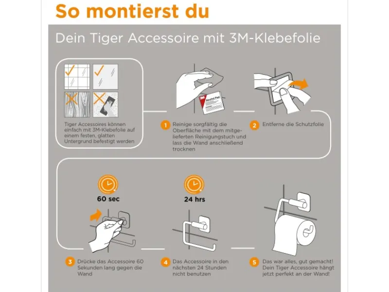 Der Tiger Tune Toilettenpapierhalter verfügt über eine Oberfläche aus gebürstetem Messing mit mattschwarzen Akzenten. Der schwenkbare Toilettenrollenhalter ist mit einer strapazierfähigen 3M-Klebefolie für eine einfache Montage ohne Bohren auf allen glatten, stabilen Untergründen ausgestattet. Sollte die Oberfläche für die Verwendung der selbstklebenden Rückseite ungeeignet sein, kann der WC-Rollenhalter optional mit Schrauben und Dübeln an der Wand montiert werden. Die Serie Tune umfasst eine breite Auswahl weiterer Accessoires für Badezimmer und Toilette, die alle wunderbar zusammenpassen. Durch das klassische Design und die trendigen Oberflächen können die Tiger Tune Accessoires einfach mit jedem Einrichtungsstil kombiniert werden. Die freistehenden und selbstklebenden Accessoires verleihen dem Badezimmer und der Toilette einen ganz besonderen Look.
