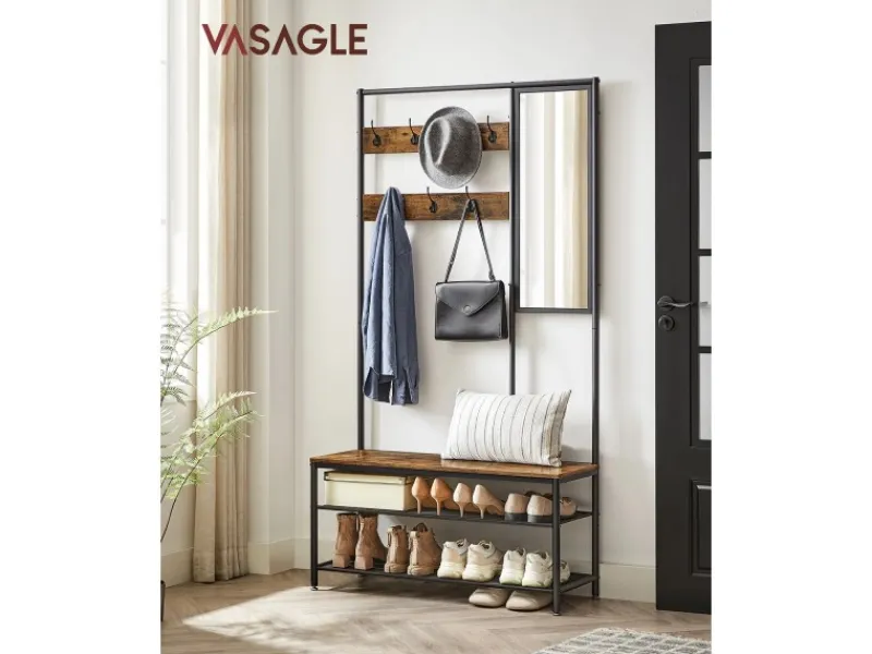 7 Kleiderhaken, 1 Bank, 1 Schuhregal