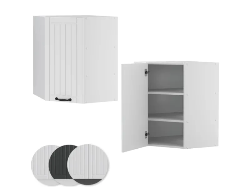 Das Eckregal für die Küche hat Abmessungen: 57×57 cm, Breite, 72 cm, Höhe, 34,1 cm, Tiefe