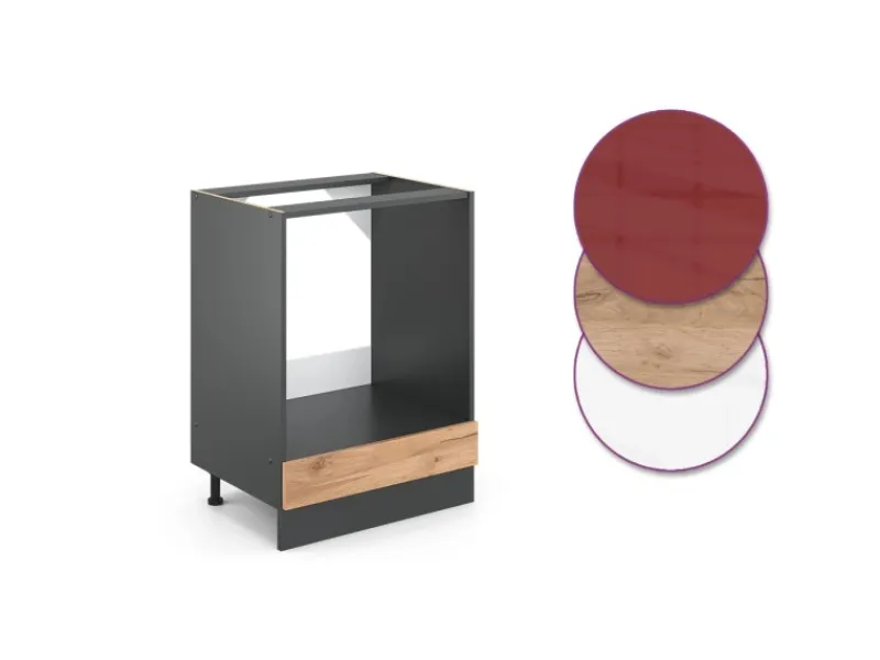 Der Küchenschrank für den Einbauherd hat Breite 60 cm, Höhe 81,6 cm und Tiefe 46 cm