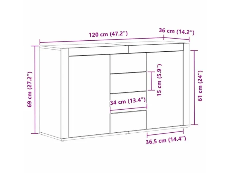 Gesamtabmessungen: 120 x 36 x 69 cm (L x B x H)