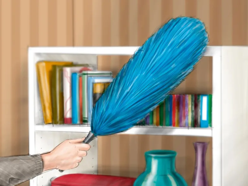 Der Staubwedel hat einen Durchmesser von ca. 17 cm bei einer Gesamtlänge von ca. 55 cm.