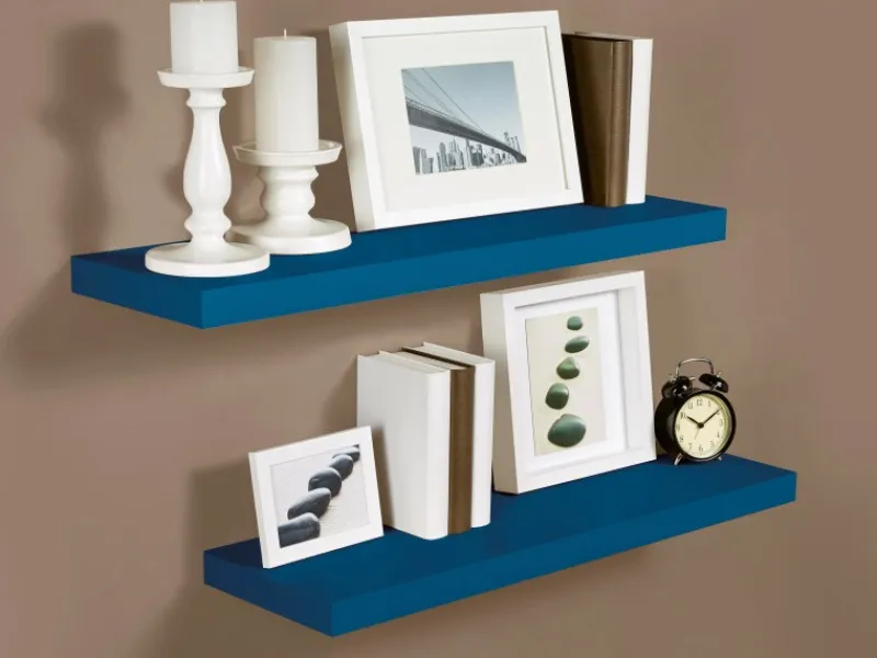 Das OBI Wandregal Valbonne in der Farbe Petrol bietet eine optimale Lösung, um Ihren Wohnraum mit wenig Aufwand dekorativ zu gestalten. Es bietet Platz für Bücher und Dekoration. Das MDF Regal überzeugt durch eine mühelose Montage. Einfach auf die zwei Metallhalter aufstecken – fertig. Die verdeckten Beschläge sind nach der Montage nicht mehr sichtbar und lassen das Möbelstück wie frei schwebend wirken. Diese Halterung ist im Lieferumfang enthalten. Die entsprechenden Dübel und Schrauben sind separat erhältlich.
