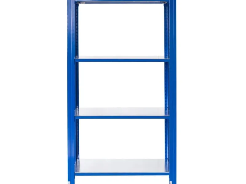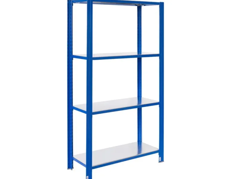 Blau pulverbeschichtet und Verzinkter Stahl: Der hochwertige Pulverbeschichtung und verzinkte Stahl Böden schützt das Regal zuverlässig vor Korrosion und Rost.