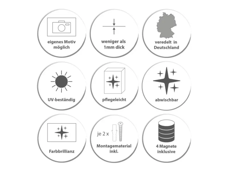 Sie können das Magnetboard auch dekorativ als Wandbild nutzen, es halten alle handelsüblichen Magnete daran. Das Komplettpaket aus Magnet Pinnwand, Montageset & 4 Magneten ermöglicht einen sofortigen Einsatz.