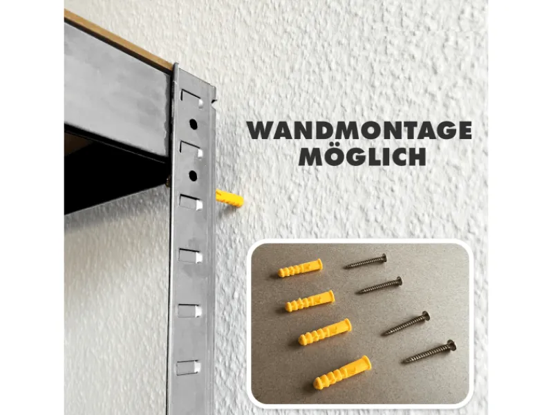 Dieses Steckregal ist ideal als Kellerregal, Lagerregal, Regal für die heimische Vorratskammer oder als Regal für die Garage. Durch das Zusammenspiel von Holz und Stahlblech können Sie das Steckregal auch perfekt für das Büro nutzen. Schwere Aktenordner sind ein Leichtes für das Aktenregal.