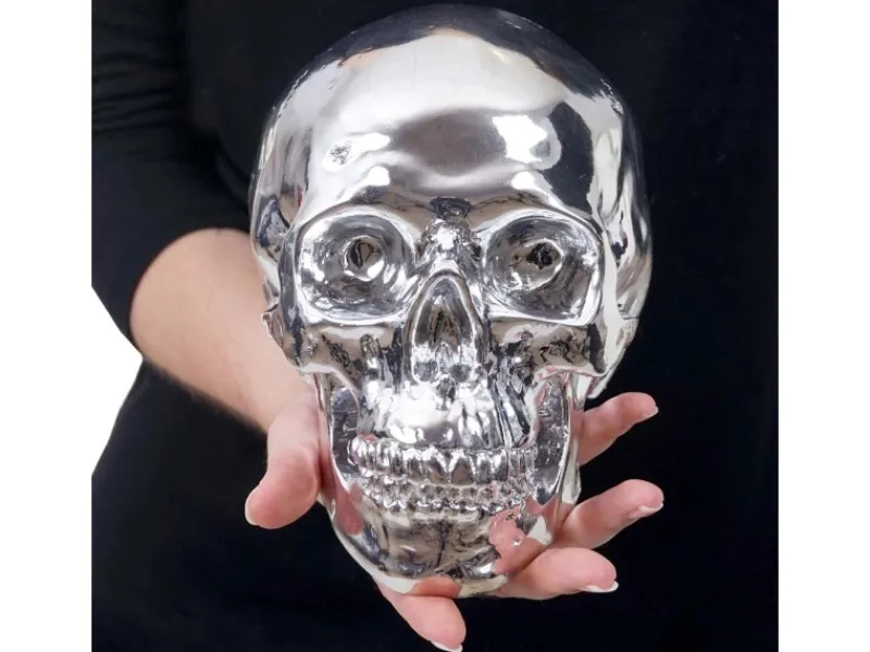 Sie suchen eine besondere und auffällige Dekoration für Ihren Raum? Dann sind Sie bei diesem silbernen Totenkopf genau richtig! Durch die Kombination aus der natürlichen Form des Schädels und der futuristischen Farbe wirkt diese Tischdeko nie langweilig. Dadurch wird diese skurrile Figur zu dem Hingucker schlechthin.