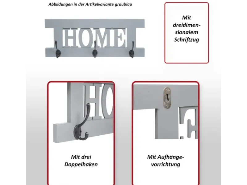 – Mit dieser Garderobe können Sie jede Wand praktisch und dekorativ aufwerten! Durch den Shabby-Look wirkt jeder Flur, oder das Schlafzimmer viel wohnlicher. Drei Haken machen es möglich, Ihre Kleidung schnell greifbar und übersichtlich unterzubringen.