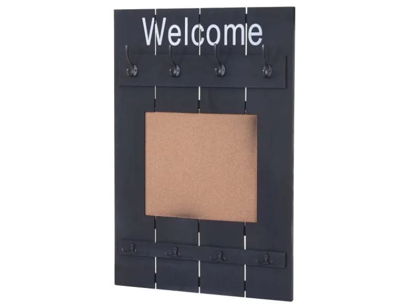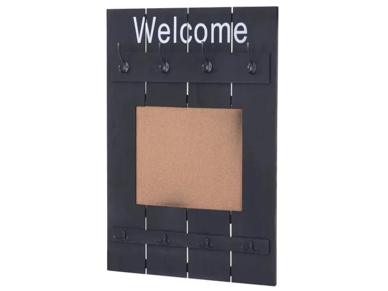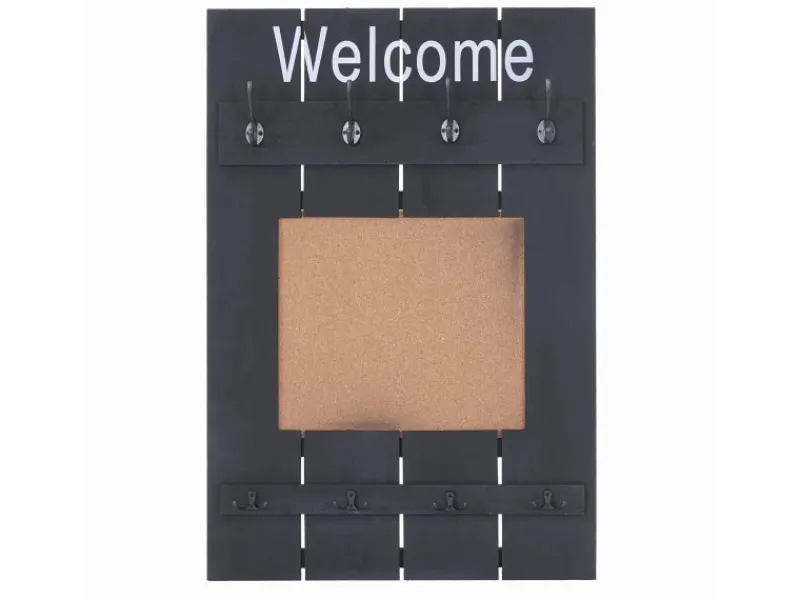 Sie wünschen von einer Wand mehr als nur Ihr Haus zusammen zu halten? Mit dieser Wandgarderobe können Sie jede Wand praktisch und dekorativ aufwerten! Durch den Shabby-Look wirkt jeder Flur, jede Diele oder auch das Schlafzimmer viel wohnlicher. Acht Haken machen es möglich, Ihre Kleidung schnell greifbar und übersichtlich platzsparend unterzubringen. An der praktischen Pinnwand können Sie auch gleich noch Ihre wichtigsten Notizen befestigen, damit Sie keinen Termin mehr vergessen.