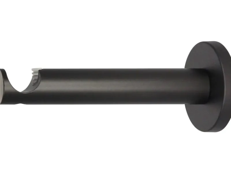 Die mydeco Gardinenstangen-Halterung Function unstreicht mit ihrem modernen Aussehen in Madentechnik jede Gardine. Der Träger in stilvoller Schwarz-Optik ist aus aus hochwertigem Metall angefertigt und für alle Gardinenstangen mit einem Durchmesser von 2 cm geeignet. Er misst eine Gesamtlänge von 13,1 cm und einen runden Kopf von 4,9 cm.
