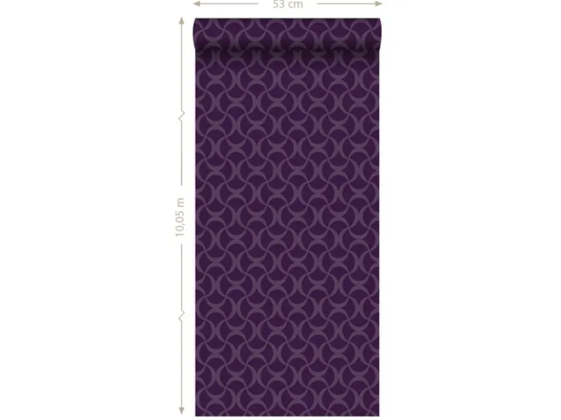 Die Maße dieser Tapete sind 53 cm x 10,05 m (Breite x Länge). Der Rapport ist 53/6.6 (versetzter Ansatz). Das heißt, dass das Motiv sich alle 53 cm wiederholt und das Muster der nächsten Tapetenbahnen jeweils um 6.6 cm verschoben werden muss.