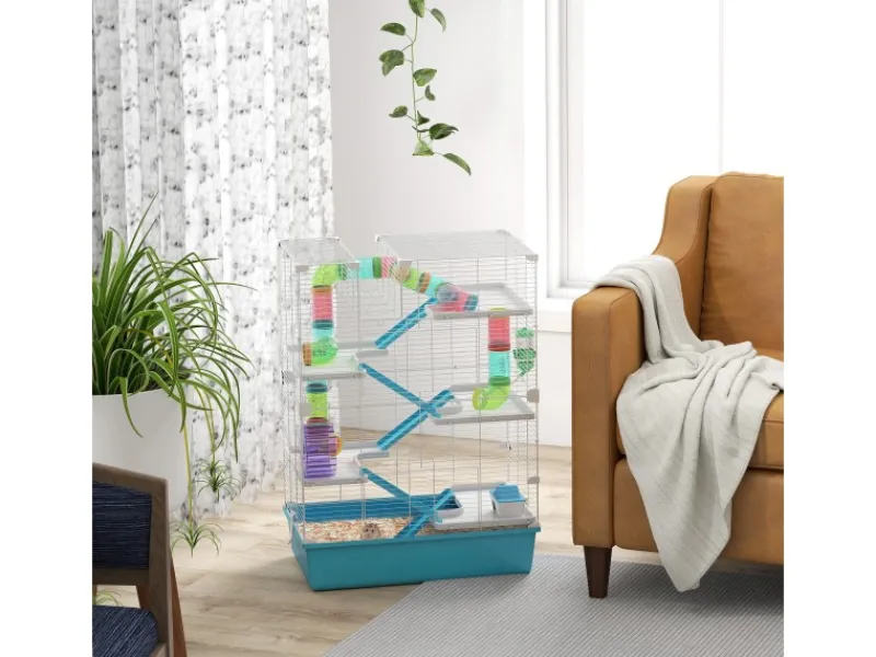 ● Sechsstöckiges Doppelturm-Design des Hamstergeheges mit bunten Erkundungsröhren