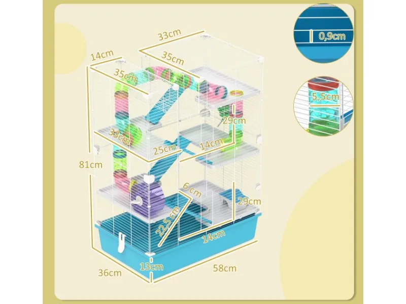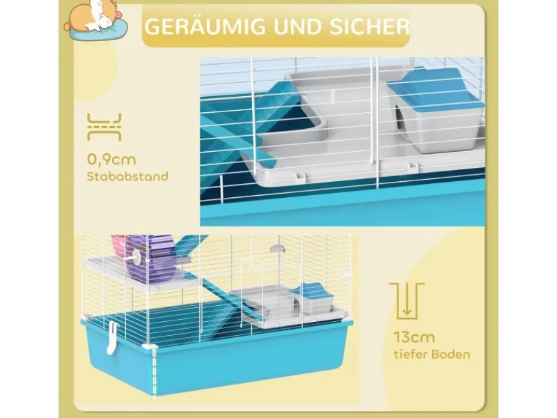 ● 13 cm tiefer Boden des Zwerghamsterkäfigs bietet viel Platz zum Spielen