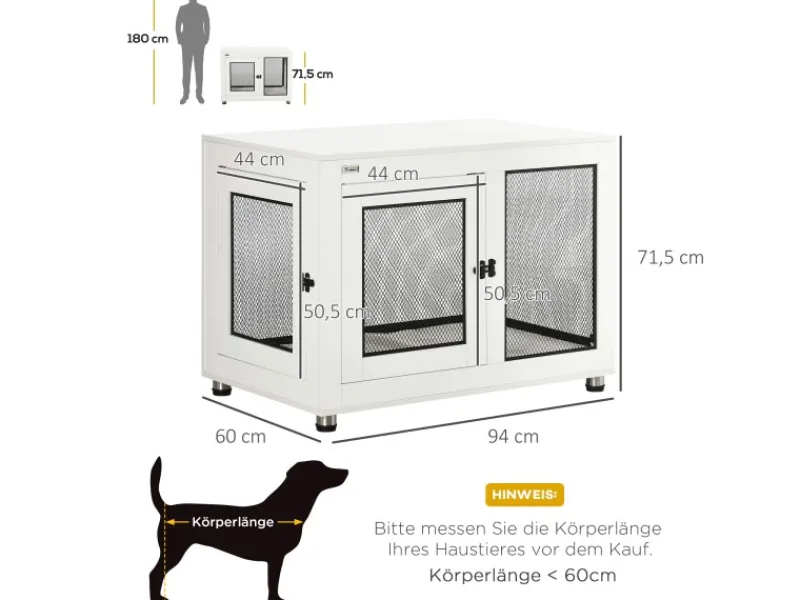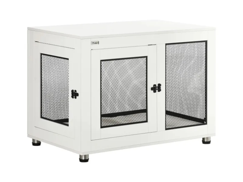 Online PawHut Hundekäfig Indoor mit Kissen 2 Türen Weiß 94 x 60 x 71,5 cm