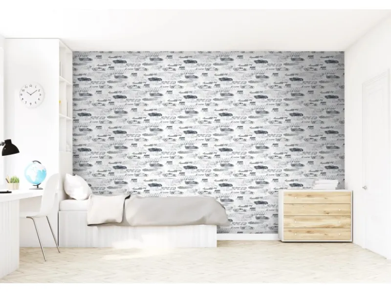 Diese fröhliche Tapete mit Rennwagen in Schwarz-Weiß verwandelt jedes Kinderzimmer in ein wahres Abenteuerland. Kombiniert mit hellen Farben und natürlichen Materialien, entsteht eine angenehme und freundliche Atmosphäre, die zum Spielen, Toben und Lachen einlädt.Maße, Rapport und Musterversatz Die Maße dieser Tapete sind 50 x 900 cm (Breite x Länge). Der Rapport ist 50/25 (versetzter Ansatz). Das heißt, dass das Motiv sich alle 50 cm wiederholt und das Muster der nächsten Tapetenbahnen jeweils um 25 cm verschoben werden muss.Tapezieren Das Anbringen dieser Vliestapete ist einfach und unkompliziert: nachdem der Vlies-Kleister direkt auf die Wand aufgebracht wurde, kann die Tapete angesetzt und anschließend glattgestrichen werden. Eventuelle Überstande können mit einem Cuttermesser entfernt werden. Beim Tapezieren wird kein Tapeziertisch benötigt und die Tapete ist auch nach Jahren restlos trocken abziehbar. Für das beste Tapezierergebnis empfiehlt Sanders & Sanders den professionellen Wallpro PRO-301 Tapetenkleister. Vorbereitungstipp: Verhindere Probleme mit der Haftung deines Tapeten, indem du vorher testest, ob deine Wandoberfläche stark saugend ist. Nimm dazu einen feuchten Schwamm und befeuchte einen kleinen Teil der Wand. Wenn der feuchte Bereich innerhalb weniger Sekunden verschwindet, ist die Wand sehr saugfähig. In diesem Fall empfehlen wir, ein Grundiermittel zu verwenden, um die Saugfähigkeit zu verringern. Sanders & Sanders empfiehlt hierfür die WALL PRO-401 Tapetenprimer.Sofort startklar! Am einfachsten ist es, direkt auch der benötigte Tapetenkleister und ein Wallpro PRO-933 Tapezierset zu bestellen. Dieses Tapezierset enthält alle Tapezierwerkzeuge, die beim Tapezieren von Vliestapeten benötigt werden. Diese Artikel können über das Suchfenster auf der Amazon Seite schnell gefunden und bestellt werden. So wird das Tapezieren zum Kinderspiel!