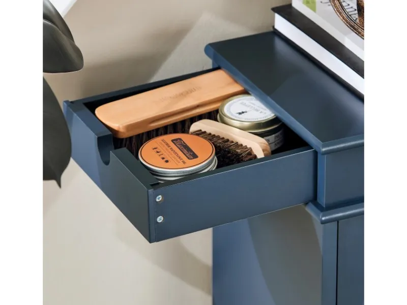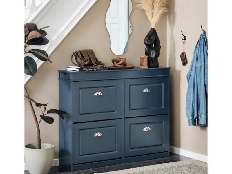 Hochwertige Scharniere sorgen für ein leichtgängiges Öffnen. Die klassische Farbe und die Metallgriffe machen es perfekt für jeden Eingangsbereich.