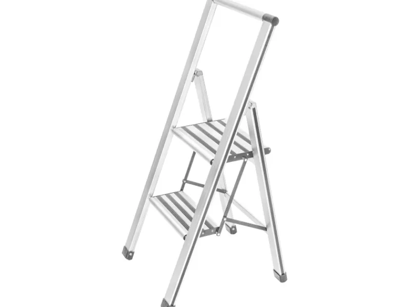 Die zuverlässige Leiter ist aus rostfreiem, beschichtetem Aluminium und rutschsicheren Kunststoffkappen gefertigt. Die hochwertige Klappleiter trägt eine Last bis 150 kg. Bei Nichtgebrauch lässt sich diese Leiter ultraflach zusammenklappen, ideal für platzsparendes Verstauen. Durch das hochwertige Aluminium ist der Klapptritt mit nur ca. 4,5 kg komfortabel leicht.