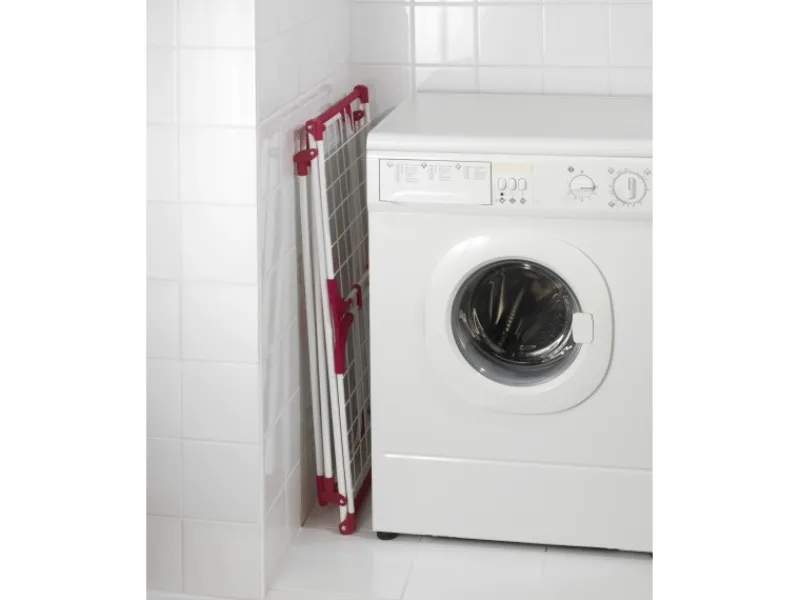 Durch das robuste Metall mit bordeaux-farbenen Kunststoff-Ecken, hat der Wäsche Trockner Summer Dry einen besonders stabilen Halt. Durch einen integrierten Clip an beiden Flügeln können diese verbunden werden und „wedeln“ beim Transport nicht herum. So klappt beim Verstauen nichts aus. Zudem können am Clip auch Utensilien wie ein Wäscheklammerbeutel aufgehängt werden. Die bordeaux-farbenen Eck-Kappen besitzen eine Kleiderbügelvorrichtung für mehr Platz zum Trocknen. Bei einer Gesamttrockenlänge von 13 m findet jedes Wäschestück seinen geeigneten Platz.