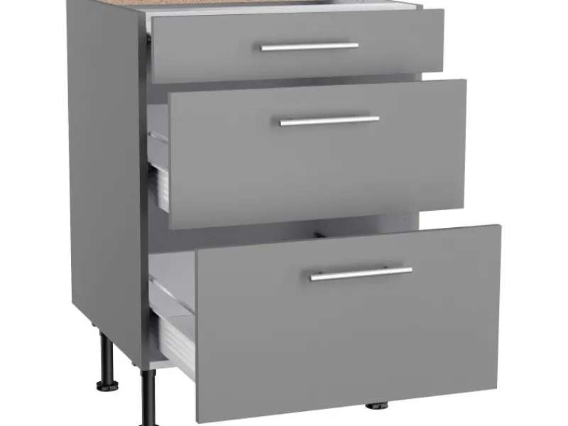 Durch die drei Auszüge und die Breite von 60 cm, bietet dieser Schrank massenhaft komfortabel nutzbare Stauflächen für Ihre Küche. Der Schrank gehört zu der Serie Mats825 von OPTIkomfort und lässt sich mit weiteren Schränken dieser Serie hervorragend kombinieren. Dadurch ist ein individuelles Gestalten Ihrer Küche leichtgemacht.