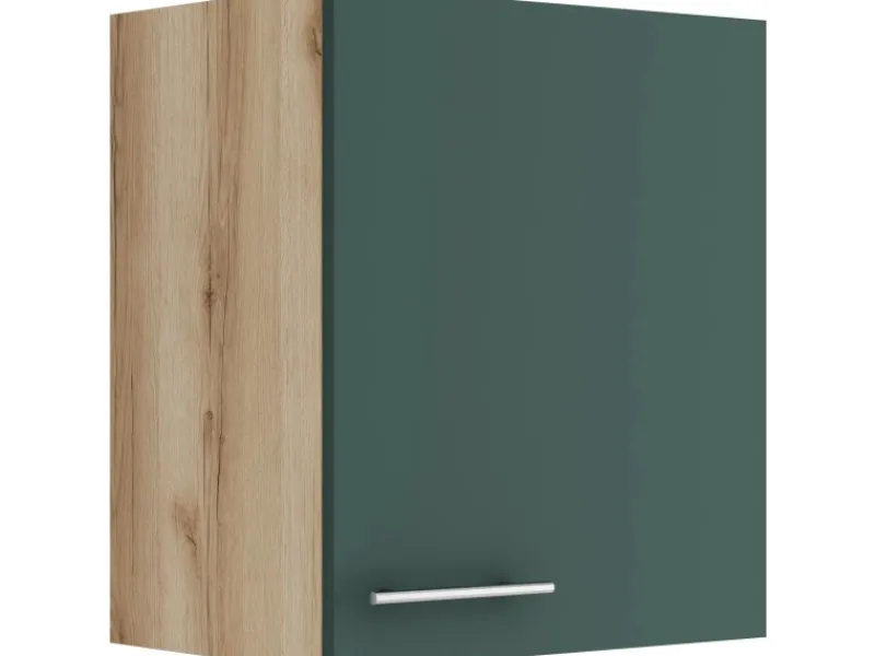 Die Serie Savona405 ist mit der Kombination aus Frontfarbe in Steingrün und Korpus in Wildeiche Nachbildung perfekt abgestimmt. Metallgriffe in Edelstahl-Optik runden den Look ab und machen Ihre Küche zu einem echten Hingucker.