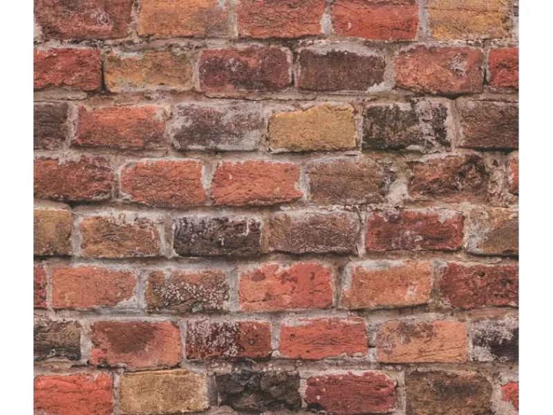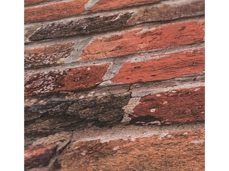 Vliestapete Ziegelsteinmauer im Used Look in Braun und Rot