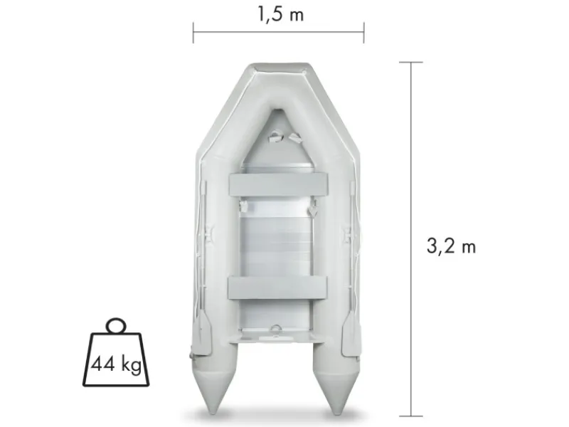 Mit Hilfe der seitlichen Tragegriffe und der seitlich befestigten Leine lässt sich das Boot bequem transportieren und im Wasser leicht in Position bringen. Das Boot kann platzsparend zusammengelegt werden und in der Tragetasche sicher bis zum nächsten Ausflug verstaut werden.