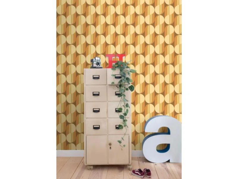 Diese Tapete mit Retro-Ornamenten in Orange und Braun verleiht jedem Wohnraum den angesagten Retro-Look und lässt sich perfekt mit schönen Retro-Design Möbeln und Accessoires in bunten Farben kombinieren. Auch Zimmerpflanzen wie Sansevieria, Philodendron, Kakteen oder Hängepflanzen passen perfekt dazu und runden den Look ab.Maße, Rapport und Musterversatz Die Maße dieser Tapete sind 50 x 900 cm (Breite x Länge). Der Rapport ist 25 (gerader Ansatz). Das heißt, dass das Motiv sich alle 25 cm wiederholt und das Muster der einzelnen Tapetenbahnen auf gleicher Höhe geklebt werden muss.Tapezieren Das Anbringen dieser Vliestapete ist einfach und unkompliziert: nachdem der Vlies-Kleister direkt auf die Wand aufgebracht wurde, kann die Tapete angesetzt und anschließend glattgestrichen werden. Eventuelle Überstande können mit einem Cuttermesser entfernt werden. Beim Tapezieren wird kein Tapeziertisch benötigt und die Tapete ist auch nach Jahren restlos trocken abziehbar. Für das beste Tapezierergebnis empfiehlt ESTAhome den professionellen Wallpro PRO-301 Tapetenkleister. Vorbereitungstipp: Verhindere Probleme mit der Haftung deines Tapeten, indem du vorher testest, ob deine Wandoberfläche stark saugend ist. Nimm dazu einen feuchten Schwamm und befeuchte einen kleinen Teil der Wand. Wenn der feuchte Bereich innerhalb weniger Sekunden verschwindet, ist die Wand sehr saugfähig. In diesem Fall empfehlen wir, ein Grundiermittel zu verwenden, um die Saugfähigkeit zu verringern. ESTAhome empfiehlt hierfür die WALL PRO-401 Tapetenprimer.Sofort startklar! Am einfachsten ist es, direkt auch der benötigte Tapetenkleister und ein Wallpro PRO-933 Tapezierset zu bestellen. Dieses Tapezierset enthält alle Tapezierwerkzeuge, die beim Tapezieren von Vliestapeten benötigt werden. Diese Artikel können über das Suchfenster auf der Amazon Seite schnell gefunden und bestellt werden. So wird das Tapezieren zum Kinderspiel!