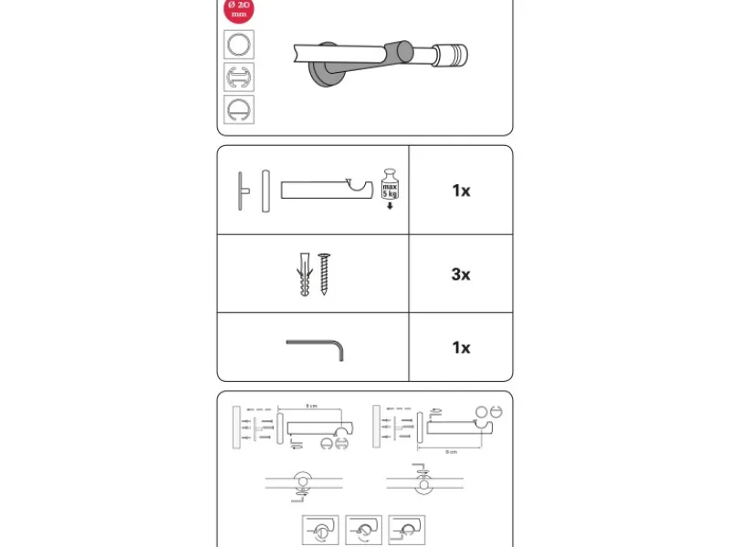 Der offene Gardinia Träger Chicago ist die ideale Ergänzung zur Gardinenstange der Gardinia Stilgarnitur Chicago mit einem Durchmesser von 20 mm. Der hochwertige Träger ist in der jeweils passenden Farbe erhältlich.