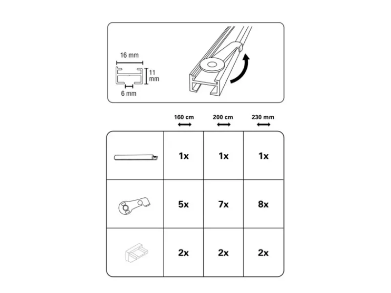 Discount Bestlivings 300 cm Vorhangschiene mit Blende 1 Lauf Weiß / 1 x 120 cm & 2 x 90 cm
