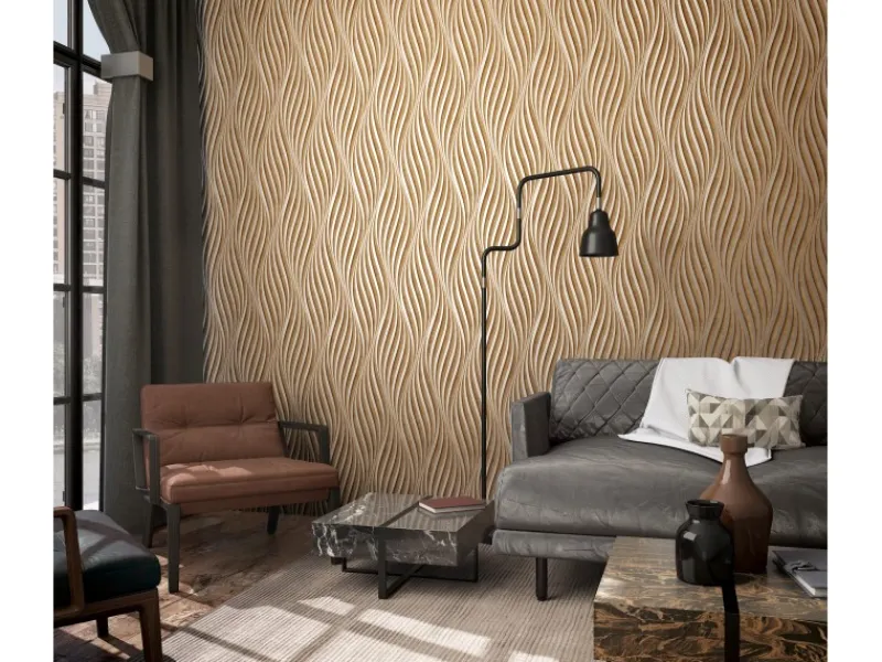 Das Trägermaterial dieser Tapete ist ein griffiges Vlies. Dadurch lässt sie sich nicht nur besonders einfach verarbeiten – Wand einkleistern, zugeschnittene Bahn einlegen, andrücken, fertig -, sondern im Falle eines Tapetenwechsels auch sehr leicht entfernen, nämlich trocken und in ganzen Bahnen.