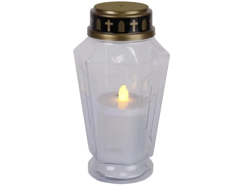 Das Grablicht ist wetterfest und kann somit auch ohne Laterne im Außenbereich eingesetzt werden.