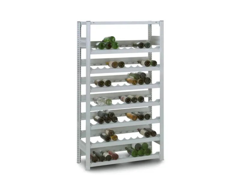 Je nach Regaltyp und Regalhöhe kann das Lagervolumen bis zu 209 Flaschen pro Regal betragen und bietet der Gastronomie, dem Hotel und den Weinhändlern genügend Platz zur Profi-Lagerung der edlen Tropfen. Je nach Platzbedarf, können die Flaschen doppelreihig in die Regale gelegt werden. Für die Lagerung von Weinkisten können diese Regale auch mit unseren Fachbodenregalen kombiniert werden. Auch einzelne Ebenen können mit Böden ausgestattet werden. Hier können dann Weinkisten, Gläser oder sonstige Accessoires gelagert werden. Auch eine Kombination mit den Getränkekistenregalen von PROREGAL ist möglich. Mit diesem schlichten Design sehen die Weinregale nicht nur im professionellen Weinkeller gut aus, sondern können auch im Gastraum von Restaurants ihren Platz finden. Diese Regale kannst Du nicht nur in lichtgrau erhalten, wir bieten diese Flaschenregale in beinah jeder RAL-Farbe an.