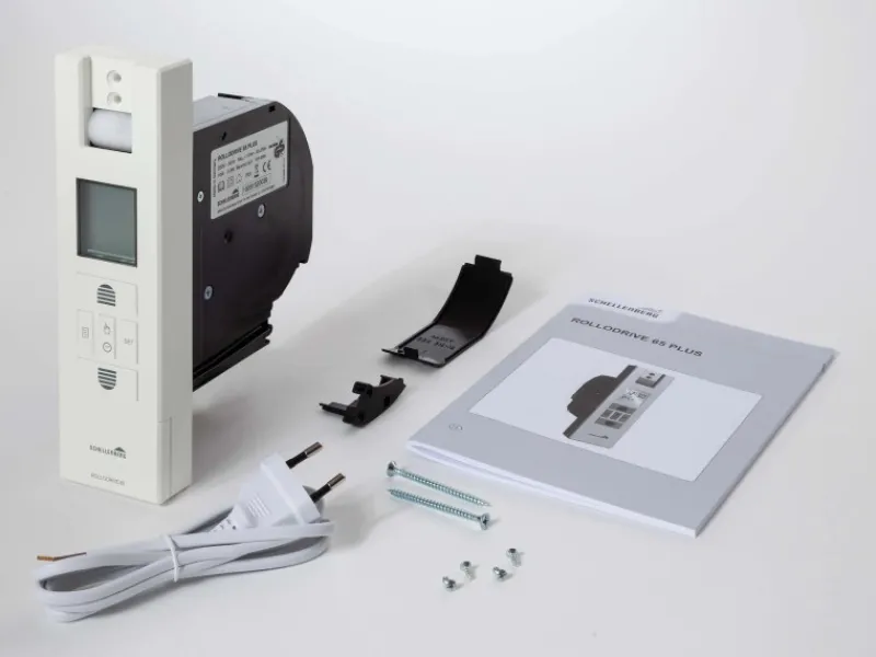 Mit einem einfachen Knopfdruck können Sie zwischen der manuellen und der automatischen Steuerung wechseln. Die Einstellung aller Programme wird durch große Tasten und ein gut lesbares LCD-Display unterstützt. Weiterhin verfügt der RolloDrive 65 Plus über eine Sicherheitsabschaltung, die den Rollladen stoppt, sobald dieser auf ein Hindernis oder eine Blockierung trifft. Die Stromversorgung erfolgt über ein Netzkabel, sollte diese unterbrochen werden, bleiben die gespeicherten Endlagen erhalten.