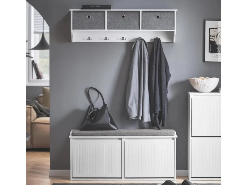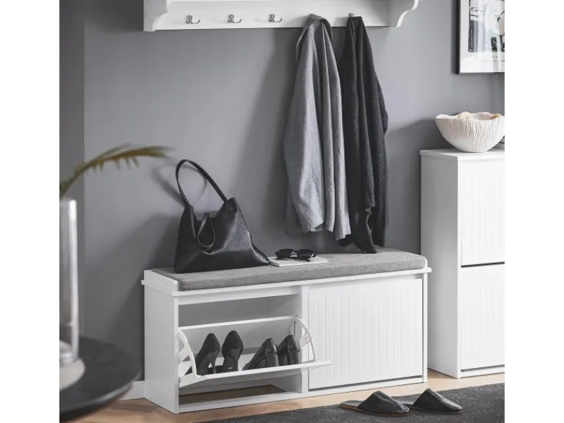 Dank der vielseitigen Schuhbank ist das schnelle An- und Ausziehen von Schuhen im Flur ein wahres Vergnügen.